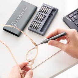 Dieses 30-teilge multifunktionale Bit-Set ist ideal für feinmechanische Arbeiten. Die Bits sind übersichtlich im hochwertigen Aluminiumcase verstaut und dank des Magneteffekts leicht zu entnehmen und einzusortieren. Das Case bietet eine großflächige Werbefläche für langanhaltende Sichtbarkeit.