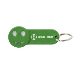 Caspar Natur ist ein Schlüsselanhänger mit integriertem Einkaufschip. Der Chip wird im Kopf des Anhängers sicher aufbewahrt und lässt sich leicht heraus schieben. Mit dem Ring wird er am Schlüsselbund befestigt. Der Artikel kann auf Wunsch in Bio-Folie eingeschweißt werden. Biologisch abbaubarer Bio-Kunststoff Arboblend®, 77 x 28 mm, 8 g