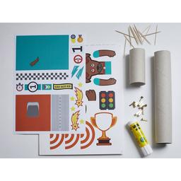 Kreativer Bastelspaß für Kinder mit ganz einfachen Mitteln. Aus "Alt" mach "Neu". Mit ein wenig Geschick und der beigefügten Anleitung entstehen in kürzester Zeit ein toller Rennwagen mit Zielflagge samt Zubehör und der niedliche Rennfahrer-Dackel "Rudi". Alles, was es braucht, sind: - der Bastelbogen Champion (Aufkleber, Anleitung, entnehmbare Formen inkl.) - alte Papierrollen (z. B. von Küchenrolle oder Toilettenpapier) - Klebestift und Zahnstocher Der Bastelbogen "Champion" für Kinder passt perfekt in unsere Zeit, zeigt er doch den nachhaltigen Umgang mit Gebrauchsgegenständen und passt perfekt zum DIY-Trend. FSC-Papier, DIN A4