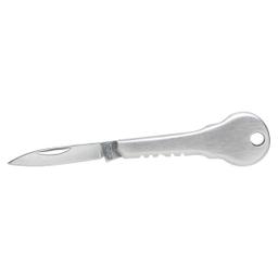 Der Schlüssel ist ein Schlüsselanhänger in Form eines Schlüssels. Er besitzt ein ausklappbares Taschenmesser und wird mit beiligendem Schlüsselring ausgeliefert. Der Schlüssel ist unauffällig am Schlüsselbund tragbar. Der Artikel wird in Biofolie verpackt ausgeliefert. Edelstahl, silber, 30 g