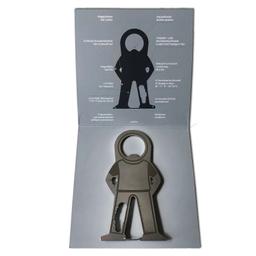 Das kompakte Multifunktionstool in Form des bekannten Öffner-Männchen, aus hochwertigem matt gestrahltem Edelstahl, ist ein praktischer und unentbehrlicher Begleiter für unterwegs. Viele nützliche Funktionen, wie z.B. Kapselheber, Vielzahnschlüssel, mehrere Sechskantschlüssel, Nagelfeile und Maßeinheit lassen kaum Wünsche offen! Es lässt sich in das Handschuhfach des Autos legen oder dank des Karabinerverschluss an einer Tasche befestigen und somit ist es immer griffbereit. Der Artikel wird in einer Klappkarte verpackt ausgeliefert. Edelstahl, 120 x 60 x 3 mm, 62 g