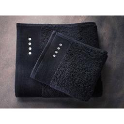 - Schwarzes Gästehandtuch der Marke Möve® verziert mit vier aufregenden Swarovski® Kristallen! - Sehr weiches Walkfrottier mit einer Grammatur von 530 g/m2 - Handtuchformat: 30 x 50 cm - Beiliegend eine Karte für Ihre persönliche Grußbotschaft! Der Artikel wird in einem schwarzen Wäschenetz verpackt ausgeliefert. Frottier, schwarz, 300 x 500 mm