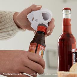 Öffnet Flaschen, Herzen & löst Probleme – der HAND AUFS HERZ 3in1-Öffner ist ein kraftvoller Helfer für alle, die ihren Kunden oder Mitarbeiter das Leben erleichtern möchten. Er öffnet Flaschen, Gläser und Kronkorken mit Leichtigkeit und ist dabei ergonomisch geformt für eine leichte Bedienung. Auch das Drehen von Schraubverschlüssen und das Anheben von Deckeln ist kein Problem für den HAND AUFS HERZ 3in1-Öffner. Er ist stets griffbereit dank des Magneten, der ihn an jeder gewünschten Stelle befestigt. Er ist in den Farben weiß und transparent rot erhältlich. Der Artikel wird in Biofolie eingeschweißt ausgeliefert. Kunststoff, Farben weiß & transparent rot, 70 x 110 mm, 75 g