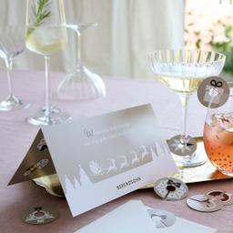 Mit der BERENDSOHN-exklusiven HANG OVER (2in1 Grußkarte & Glasmarkierer) hast du die Möglichkeit, deinen Kunden, Partnern und Mitarbeitern einen ganz besonderen Gruß zu senden. Die Rückseite der Klappkarte besteht aus 8 vorperforierten Glasanhängern, die um den Stil oder den Rand eines Glases passen. Die Anhänger sind in verschiedenen Designs gehalten und bieten somit nicht nur die praktische Funktion, dass Gläser nicht mehr vertauscht werden können, sondern bringt auch eine dekorative Note auf jede Tafel.