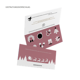 Die Vorderseite der Karte lässt sich ganz individuell und passend für dich gestalten. Die Farbe des Fonds kann angepasst werden und natürlich sind auch die Überschriften, der Grußtext und das einzudruckende Logo frei zu bestimmen. Unser KREATIV SERVICE hilft dir hier völlig kostenfrei bei der Gestaltung und berät dich umfassend.