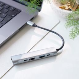 - [5 Anschlüsse]: Schluss mit fehlenden oder falschen Anschlüssen, die HUB-STATION kombiniert alles was man zum flexiblen Arbeiten braucht. 3 USB-Anschlüsse, davon eine 1 mit Schnellladefunktion und 2 USB-C-Anschlüsse, davon ebenfalls eine 1 mit Schnellladefunktion.