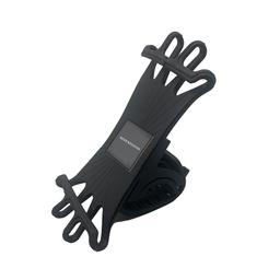 Alles IM BLICK! IM BLICK ist die perfekte Erfindung für alle, die das Smartphone auf dem Fahrrad im Blick haben möchten. Einfach die Silikonschnalle am Lenker festziehen und die elastischen Silikonbänder um das Smartphone stülpen. Die flexible Handyhalterung ist für alle gängigen Smartphonegrößen geeignet. Es ist einfach zu befestigen und bietet dem Smartphone einen festen Halt auf dem Rad. Musik, Karten oder Fitness Apps können unterwegs bequem bedient werden. IM BLICK ist zu 360° drehbar und kann ganz einfach zum Pausieren auf der Bank abgenommen werden. Der Artikel wird in einem schwarzen non-woven Beutel verpackt ausgeliefert. Silikon, 150 x 80 mm, 75 g
