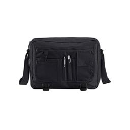 - 100 % Polyester - Maße: 38 x 30 x 12 cm - 11 Liter Fassungsvermögen - 2 Reißverschlussfächer - 4 Stiftfächer - Handyfach mit Klettverschluss - Gepolsterter Griff, Paspeln in Kontrastfarbe