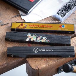 • [Individuelle Gestaltungsmöglichkeiten]: Neben dem Aufdruck deines Logos besteht auch die Option, die gesamte Fläche des zusammengeklappten Zollstocks mit einem aufmerksamkeitsstarken Motiv zu versehen.
