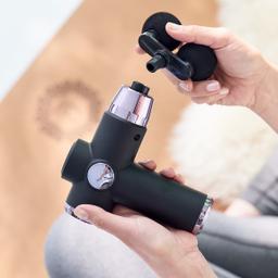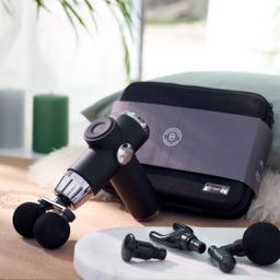 Befreie deine Mitarbeiter und Kunden von Verspannungen mit der RELAXMAX Massage-Pistole. Individuell einstellbare Intensität, 5 Aufsätze für gezielte oder großflächige Massage. Akkubetrieben, praktische Textilbox für Aufbewahrung. Bringe Entspannung und Wohlbefinden in den Alltag jederzeit und überall.