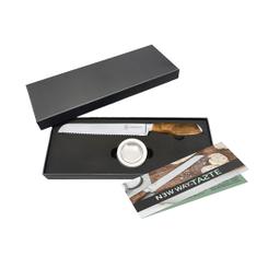Feste Kruste, weiches Innenteil: Lecker! Aber für viele Messer eine echte Herausforderung. Mit dem SÄGEWERK Brotmesser kein Problem. Durch seine hochwertige Klinge im Wellenschliff gleitet das Messer förmlich durch das Brot. Als Fortführung unserer Messerserie ist das SÄGEWERK Brotmesser mit der No. 4 und dem BERENDSOHN-Logo auf der B-Seite gekennzeichnet. Ein hervorragendes Schneideerlebnis wird durch das Edelstahl-Messer mit zertifiziertem Teakholzgriff und einer durchgeschmiedeten Säge-Klinge gewährleistet, welches angenehm in der Hand liegt. Komplettiert wird das hochwertige Geschenk-Set durch 50 g Luisenhaller-Tafelsalz in einer hochwertigen Aludose. Der Artikel wird in einem hochwertigen Geschenkkarton verpackt ausgeliefert. Brotmesser: Edelstahl, Teak-Holz, 334 mm, 310 g Luisenhaller Tiefensalz: 65 x 30 mm, 70 g
