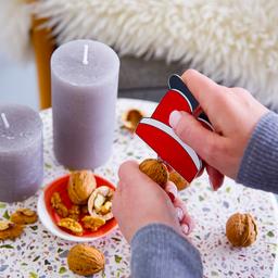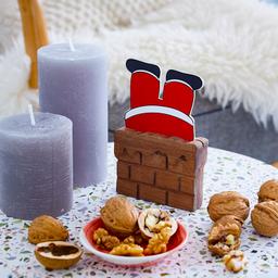 Endlich ein Nussknacker mit Spaßfaktor! Vom Bremer Designer Jan Dirk Sinning entwickelte Nussknacker in Weihnachtsmann-Form steckt – wenn er nicht benutzt wird – kopfüber im Schornstein. Die zwei Teile des intelligenten Stecksystems sind denkbar einfach in der Nutzung und maximal humorvoll im Gesamteindruck. Der Santa-Nussknacker ist aus schwerem Edelstahl, lackiert und hat eine Spitze mit den Walnüssen, im Büro oder zuhause, mühelos geknackt werden. Aufbewahrt wird Santa im Schornstein aus FSC-zertifiziertem Holz. Unser SANTA ist hochwertig in einer Geschenkschachtel verpackt, die auch gleich einen kleinen Erstvorrat an Nüssen enthält. Der Artikel wird in einem Geschenkkarton verepackt ausgeliefert. Im Lieferumfang sind 6 Walnüsse enthalten. Edelstahl, FSC-Akazienholz, 75 x 27 x 2,5 mm, 360 g
