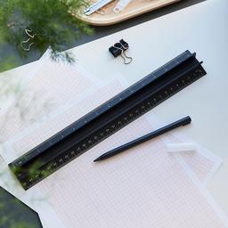 Das Lineal aus Aluminium ist wunderbar stabil und ein unverzichtbares Arbeitsmittel im Berufsalltag. Gerade Linien zeichnen oder Maße nehmen - Dieses 30 cm Lineal darf im Büro und Atelier nicht fehlen. Eine cm Skala und Inch Scala liegen sich gegenüber. Die mittlere Griffschiene dient nicht nur der sicheren Handhabung, sondern ebenfalls als Halterung für Smartphones oder unseren im Set enthaltenen Eternum. Der Bleistift mit dem nie-mehr-anspitzen-Effekt. Die Mine dieses "ewigen Bleistifts" ist so hart, dass sie sich fast nicht abnutzt. Die Spitze gibt beim Schreiben durch Reibung Legierungsmetallmoleküle frei, die sich auf dem Papier zersetzen. Dadurch ersetzt der langlebige Schreiber über 3.500 herkömmliche Bleistifte. Eine Kunststoffkappe wird verwendet, um die ewige Mine beim Transport zu schützen. Um sicherzustellen, dass der Bleistift nicht vom Tisch rollt, ist am Ende des Schafts ein kleiner Stopper angebracht. Eloxiertes Aluminium, schwarz, 46 mm x 310 mm, 145 g Der Artikel wird in einer grauen Geschenkbox verpackt ausgeliefert.