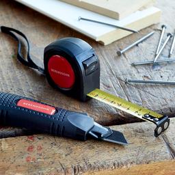 Das PROFI-SET AUFMASS & AUFSCHNEIDER ist ein ideales Werkzeug-Set für Profis und Hobbyhandwerker. Es enthält das robuste Cuttermesser AUFSCHNEIDER mit wechselbarer Sicherheitsklinge und einem ergonomisch geformten Griff mit Antirutsch-Noppen. Das 5-Meter-Profi-Maßband AUFMASS ist ebenfalls extrem strapazierfähig und angenehm in der Hand zu halten. Es verfügt über eine sanfte Einzugmechanik, einen Magnet an der Lippe für genaue Messungen und einen integrierten Clipper zum Einklemmen in den Gürtel. Beide Artikel werden in separaten Geschenkkartons ausgeliefert. 5-Meter-Maßband: Metall/Kunststoff, 60 x 60 x 30 mm, 210 g) Profi-Cuttermesser: Kunststoff/Aluminium, 160 x 37 mm, 113 g)