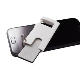 Das Smartphone hat unseren Alltag und unsere Gewohnheiten verändert. Der smarte Freund ist ein Alltagshelfer, der dieser neuen Mobilität Rechnung trägt. Er beinhaltet Handystand sowie ein Displayreinigungspad und kann mithilfe eines Rings am Schlüsselbund befestigt werden. Der Artikel wird in Biofolie verpackt ausgeliefert. ABS Kunststoff, weiß, 75 x 35 x 9 mm, ca. 10 g