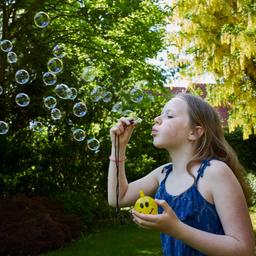 Smiley Bubbles ist eine gelbe Kunststoffflasche mit Drehverschluss, Seifenblasenstab und schwarzer Kordel mit Sicherheitsverschluss. Bei der Flüssigkeit handelt es sich um Seifenlauge. Der Artikel kann auf Wunsch in Bio-Folie eingeschweißt werden. Kunststoff, Ø 63mm, 53 g
