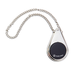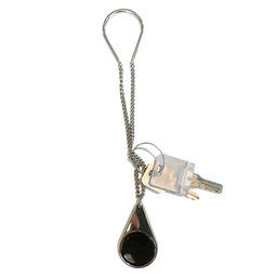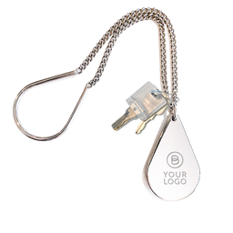 Ein Schlüsselanhänger, vernickelt mit Werbeplexischeibe.