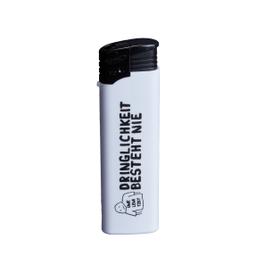 Die Weisheiten von Uwe Lewitzky haben längst Kultstatus erlangt. Die clever verrückten Textarbeiten des Schweizer Künstlers zeugen von einem besonderen Sinn für Formalität im Design und Humor. Diese Form der Kunst in den Alltag zu holen, gelingt mit dem Feuerzeug "Dringlichkeit besteht nie." Bei dem Feuerzeug handelt es sich um ein Piezo-Feuerzeug. Ein besonderes Geschenk mit Esprit und Humor, zugleich auch ein Statement. Es handelt sich um ein exklusives, so in der Ausführung und Textgestaltung abgestimmtes und durch Uwe Lewitzky freigegebenes Produkt. Änderungen sind nicht möglich. Piezo Feuerzeug - aus hochsicherem ABS-Kunststoff. Das schlagfeste Gehäuse ist TÜV-geprüft, der elektronische Zündmechanismus ist mit einer Kindersicherung ausgerüstet. Der Doppelgastank ist nachfüllbar und verfügt über einen besonders großen Tankinhalt von 1,7 Gramm, üblich sind 1,4 Gramm. ABS-Kunststoff, weiß, 82 x 25 mm, 19 g