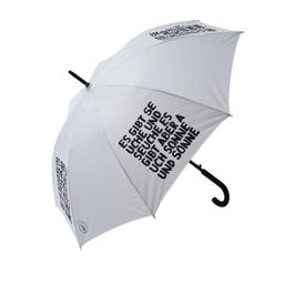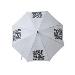 Die Weisheiten von Uwe Lewitzky haben längst Kultstatus erlangt. Die clever verrückten Textarbeiten des Schweizer Künstlers zeugen von einem besonderen Sinn für Formalität im Design und Humor. Diese Form der Kunst in den Alltag zu holen, gelingt mit dem Regenschirm "Es gibt Seuche und Seuche. Es gibt aber auch Sonne und Sonne.". Ein besonderes Geschenk mit Esprit und Humor, zugleich auch ein Statement. Der Schirm besteht aus schwarzem Fiberglas, ist windbeständig und besitzt einen gummierten Griff. Die große Bespannungsfläche bietet zwei Menschen Platz. Auf dem Verschlussband mit Klettverschluss ist Platz für Ihr Logo im Siebdruck. Der Artikel wird mit einer schwarzen Schutzhülle und einem Griffschutz mit Infos zum Künstler ausgeliefert. Es handelt sich um ein exklusives, so in der Ausführung und Textgestaltung abgestimmtes und durch Uwe Lewitzky freigegebenes Produkt. Änderungen sind nicht möglich. Fiberglas, weiß, Gesamtlänge: 860 mm, ca. 460 g