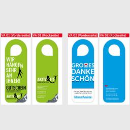 Mit dem Türanhänger bleiben Sie auf charmante Art mit Ihren Kunden in Verbindung. Der ANhänger verfügt über eine wasserabweisende Beschichtung, ist beidseitig im Digitaldruck veredelbar und bietet viel Platz für Ihre individuelle Botschaft. Befestigen Sie den Türanhänger z.B. an Haustüren, Gartenpforten, Autotüren oder Briefkästen - überall dort wo Sie Kunden erreichen möchten. Tipp: Mit einem integrierten Rabattcoupon gestalten Sie die Werbewirkung noch effektiver. Der Artikel wird geschichtet in einem Karton verpackt ausgeliefert. Dieser Artikel hat eine verkürzte Lieferzeit von 2 Wochen. 300g/m2 beschichtetes Papier, 100 x 280 mm
