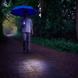 Der kompakte Regenschirm mit wasserabweisendem Schirmbezug und schwenkbarer LED-Leuchte am Griff, mit bewährter Auf-Zu-Automatik! Zusätzlich verfügt der Schirm jetzt über eine praktische Schlaufe, diese dient zur Aufhängung oder praktische Tragehilfe. Der Clou: die praktische Tragetasche, die gleichzeitig als Schirmhülle dient und auch bei der Nutzung als Einkaufshilfe genügend Platz für die Verwahrung des Schirms bietet. Exklusives Design by Berendsohn. Der Artikel wird ohne Umverpackung ausgeliefert. Polyester, blau, schwarz, Ø 95 x 320 mm, 340 g
